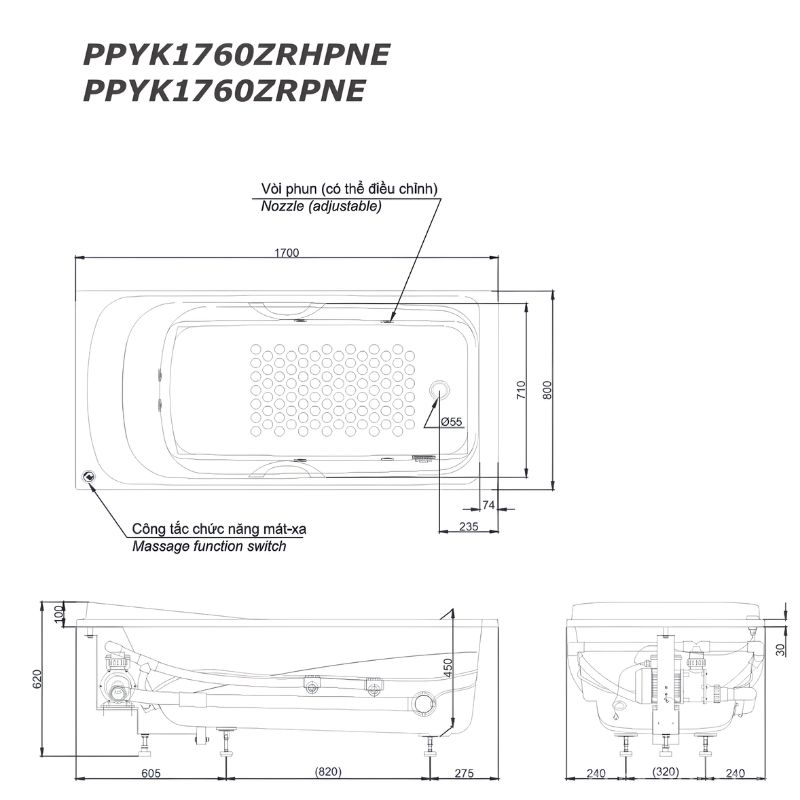 Đặt mua Bồn tắm đặt sàn ngọc trai massage TOTO PPYK1760ZRPNE.P