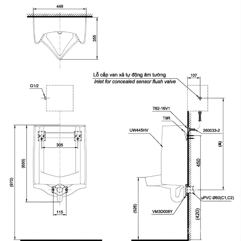 Đặt mua Bồn tiểu nam dáng vuông treo tường TOTO UT445H