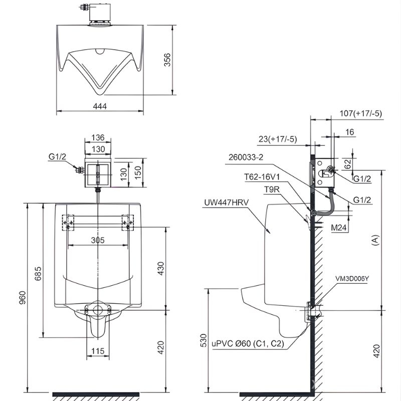 Bồn tiểu nam UT447HR được thiết kế nhỏ gọn, treo tường, phù hợp với nhiều diện tích phòng tắm, đi kèm vách ngăn tạo sự riêng tư cần thiết. Chế độ xả trải đều mạnh mẽ kết hợp hệ thống Siphon tích hợp giúp dòng nước thoát nhanh, làm sạch hiệu quả toàn bộ bề mặt, hạn chế cặn bẩn và mùi khó chịu. Hơn nữa, sản phẩm còn có thể kết hợp cùng van xả cảm ứng tùy chọn, mang lại trải nghiệm hiện đại, hạn chế tiếp xúc trực tiếp.