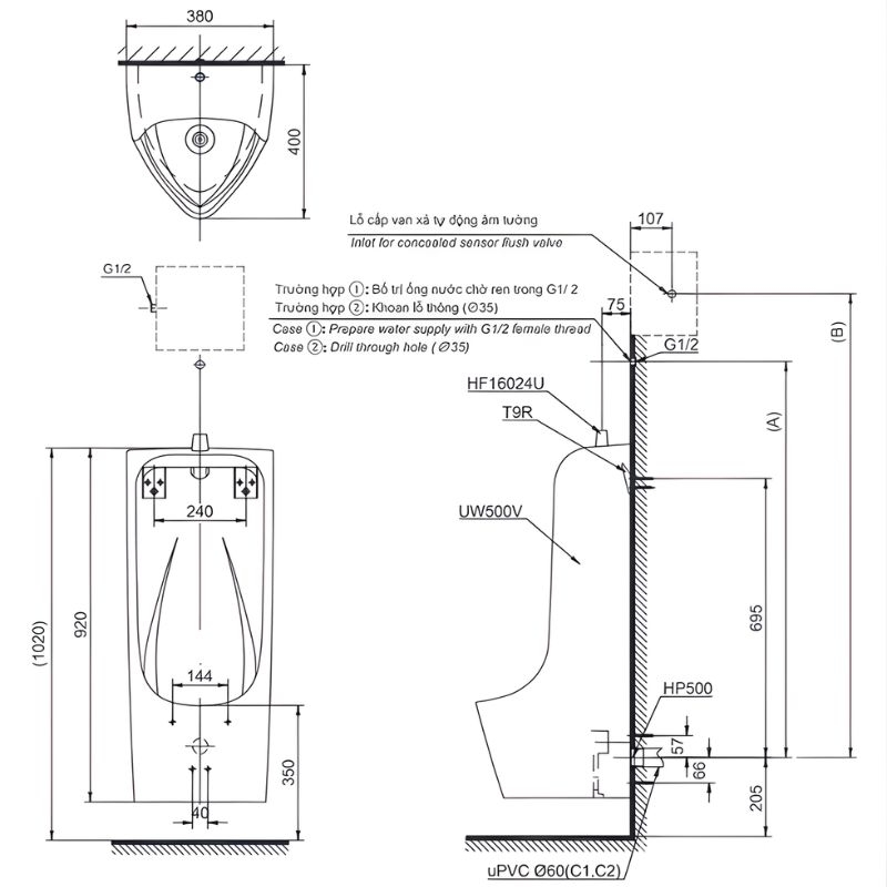 Giới thiệu Bồn tiểu nam treo tường cao cấp TOTO UT500T