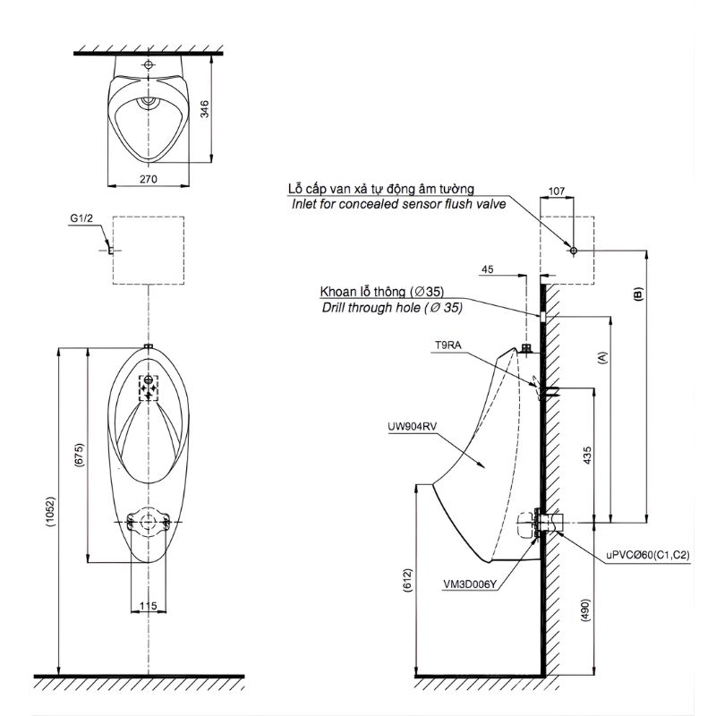 Giới thiệu Bồn tiểu nam treo tường men chống bẩn TOTO UT904R
