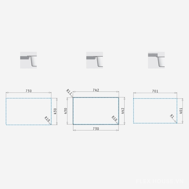 - Thiết kế gờ trượt thông minh: Cho phép trượt các phụ kiện như thớt, rổ hoặc khay, giúp mở rộng không gian làm việc tiện lợi.