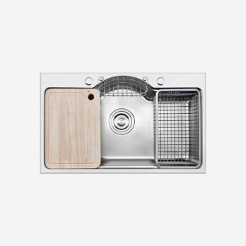Với độ sâu 220 mm, Chậu rửa giúp hạn chế bắn nước ra ngoài khi sử dụng. Bộ phụ kiện đi kèm gồm siphon, thớt, rỗ, tăng thêm tiện ích cho người dùng. Ngoài ra, nhờ màu sắc nguyên bản của inox 304, chậu có độ bền màu cao, không phai bạc theo thời gian, giúp duy trì vẻ đẹp sáng bóng lâu dài.
