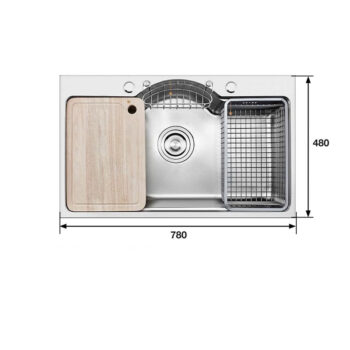 Chậu rửa KF-PS7848 với thiết kế một hộc rộng rãi giúp người dùng dễ dàng thao tác khi rửa thực phẩm, bát đĩa mà vẫn đảm bảo sự gọn gàng trong không gian bếp. Sản phẩm có kích thước 780Dx480R mm, phù hợp với nhiều kiểu bếp, mang lại sự tiện nghi và linh hoạt trong lắp đặt.