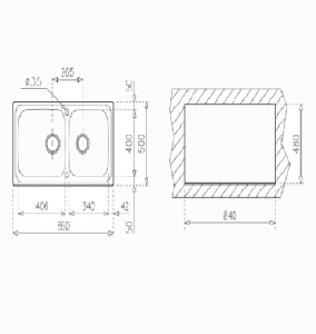 - Kích thước hộc rửa 1: 406 x 406 x190