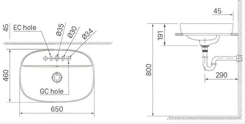 - Lỗ xả tràn tiện lợi