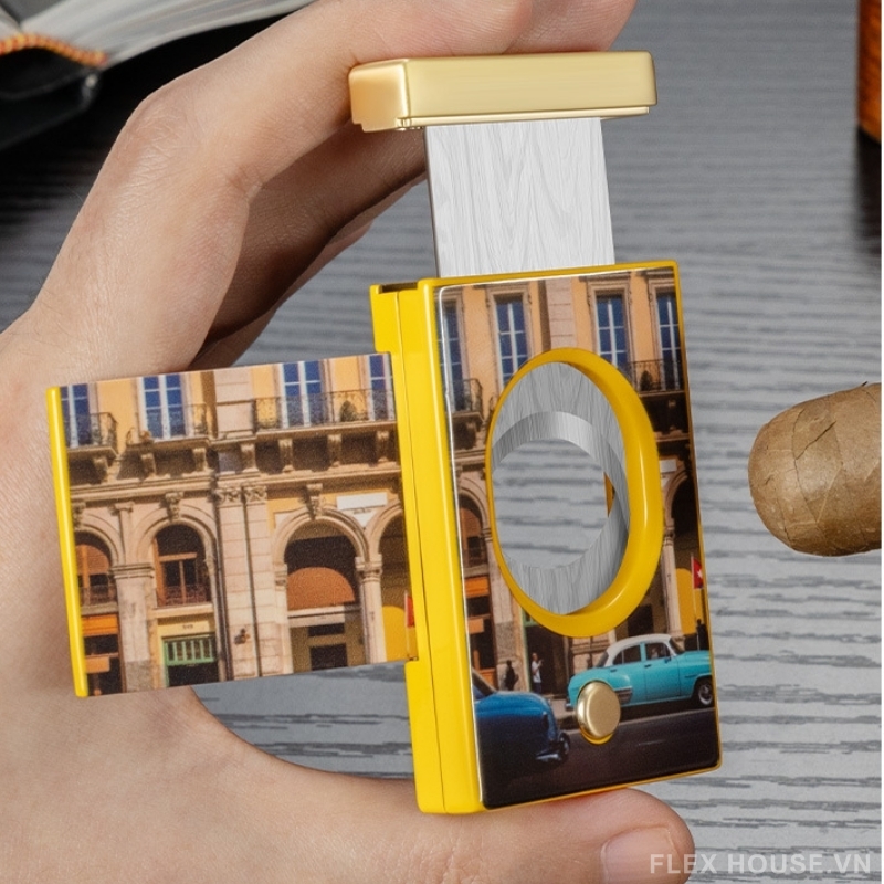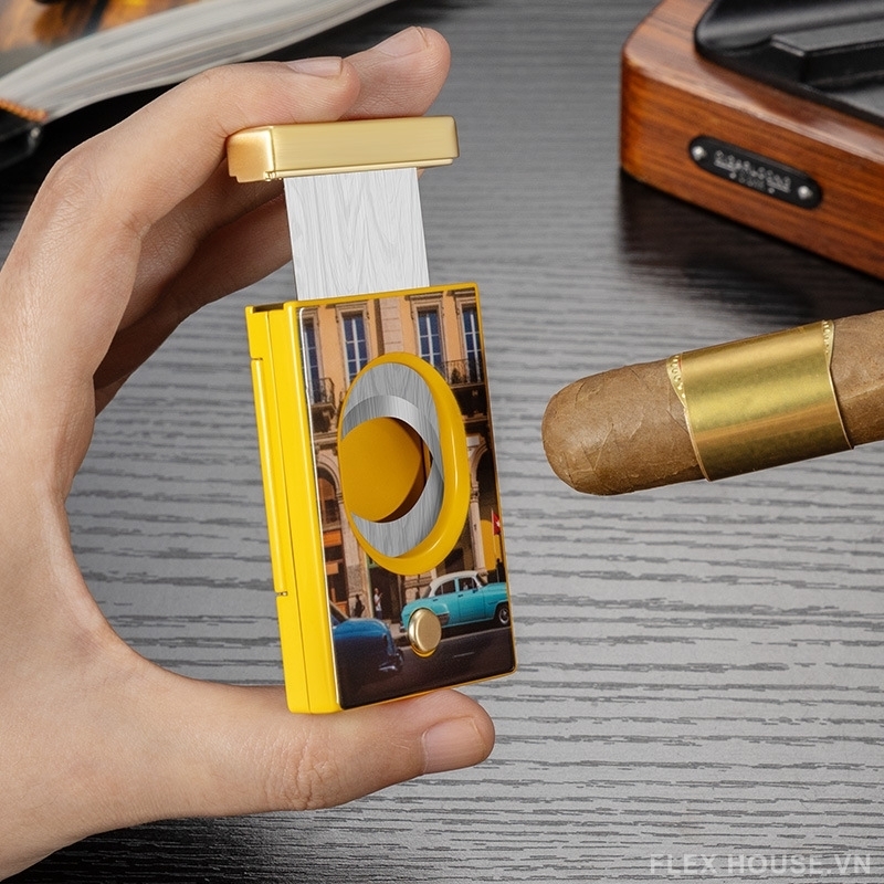 - Lưỡi dao thép không gỉ sắc bén: cắt nhanh, gọn, không làm rách lớp lá cigar
