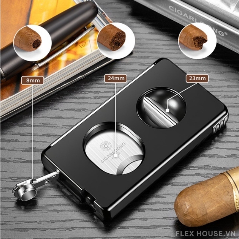 - Hai chế độ cắt linh hoạt: hỗ trợ cả V-cut (23mm) và flat-cut (24mm) phù hợp nhiều loại cigar