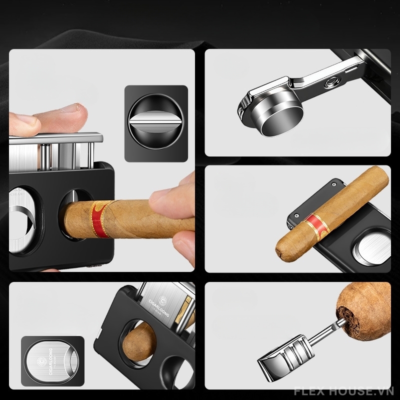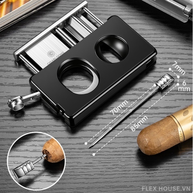 - Thiết kế 5 trong 1 tiện lợi: tích hợp cắt V, cắt phẳng, kim thông, đục lỗ và giá đỡ cigar trong một sản phẩm