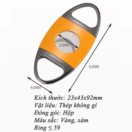 Dao cắt xì gà hai lưỡi inox hình Oval hiện đại EC01G là dụng cụ được sử dụng để cắt đầu của điếu xì gà hình oval, dao cắt có dạng kìm tròn với hai lưỡi sắc bén được làm bằng chất liệu inox – thép không gỉ được thiết kế theo phong cách hiện đại tối giản với hai màu vàng xám cá tính. Ưu điểm của dao cắt 2 lưỡi là xì gà được cắt từ 2 phía cùng một lúc, giúp hạn chế hiện tượng lá cuốn phía ngoài xì gà bị kẹt vào lưỡi dao tạo ra một vết cắt sạch và đều.