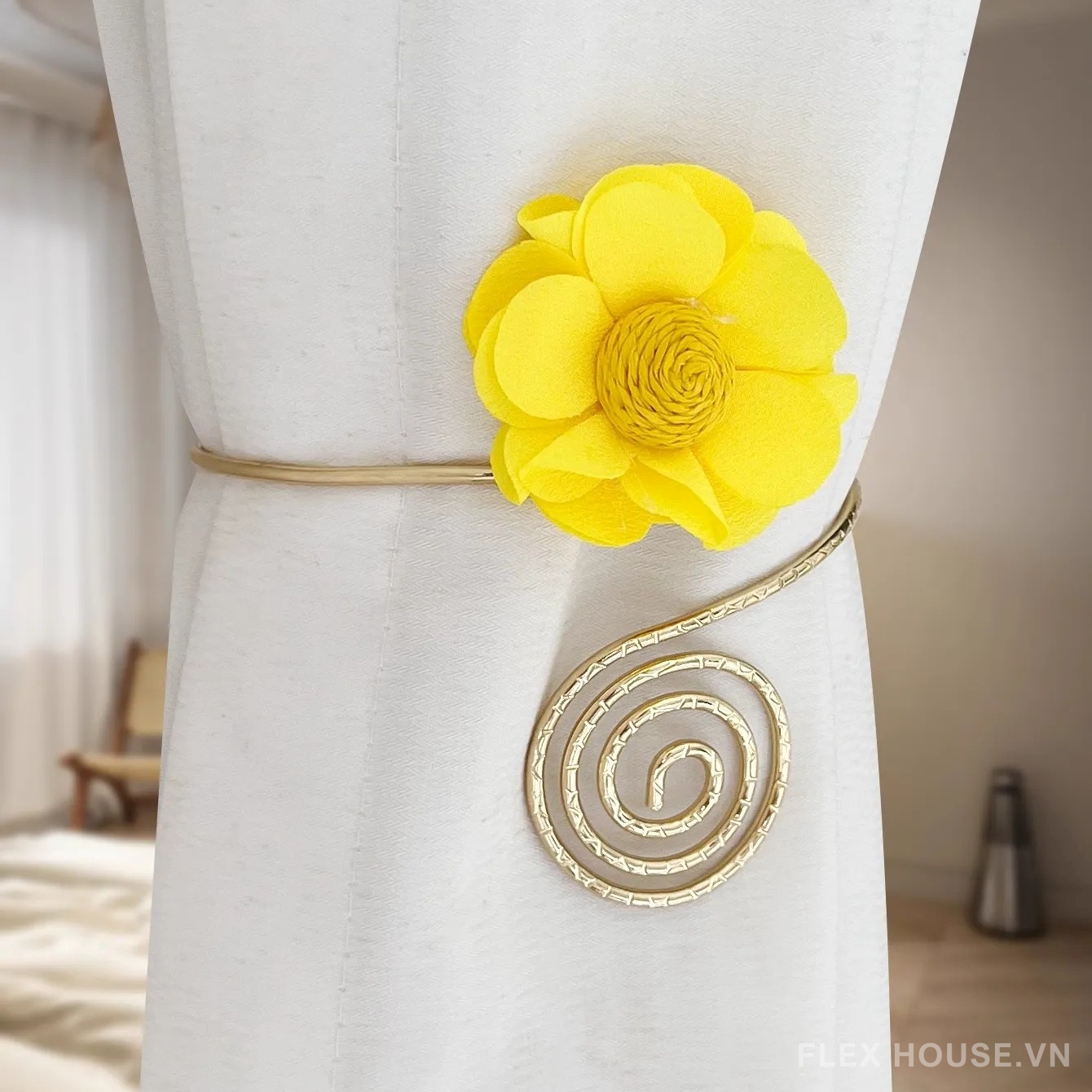 Dây kim loại buộc rèm đính hoa và bướm FSH785 là điểm nhấn trang trí đầy nghệ thuật dành cho không gian sống hiện đại. Thiết kế tinh xảo với thân dây kim loại uốn lượn mềm mại, kết hợp cùng hoa vải handmade và họa tiết bướm cắt laser tạo nên vẻ đẹp vừa thanh thoát vừa nổi bật.