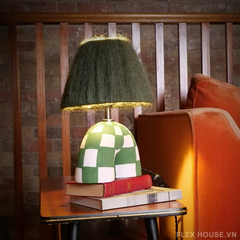 The Mossy Arch OMI6171 là một thiết kế đèn bàn mang đậm tinh thần nghệ thuật đương đại pha chút retro playful, nổi bật với form dáng vòm độc đáo như một “cổng kiến trúc thu nhỏ”. Phần thân đèn phủ họa tiết caro xanh – trắng tạo hiệu ứng thị giác mạnh mẽ, vừa mang hơi hướng Mid-century, vừa gợi cảm giác nghệ thuật Memphis đầy phá cách – cực kỳ phù hợp cho những không gian cần điểm nhấn cá tính như homestay, studio hay quán café concept.