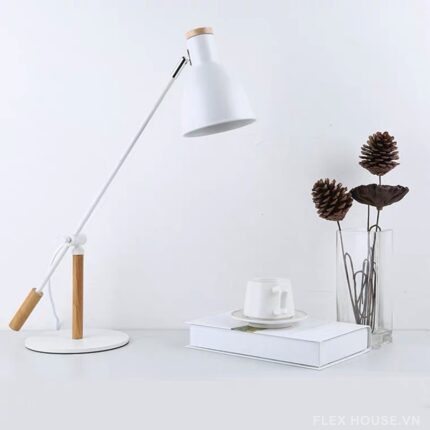 Phần thân đèn là sự kết hợp giữa kim loại sơn tĩnh điện và tay gỗ tự nhiên đối màu độc đáo, mang hơi hướng Scandinavian hiện đại. Hai gam màu trắng hoặc đen tinh tế giúp DB14 dễ dàng hòa hợp với nhiều không gian: từ đèn bàn học, bàn làm việc, bàn trang điểm cho đến đầu giường phòng ngủ – nhỏ gọn nhưng luôn là điểm nhấn vừa đủ.