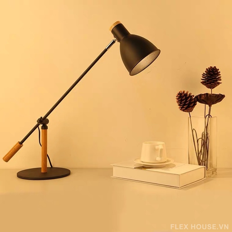 Phần thân đèn là sự kết hợp giữa kim loại sơn tĩnh điện và tay gỗ tự nhiên đối màu độc đáo, mang hơi hướng Scandinavian hiện đại. Hai gam màu trắng hoặc đen tinh tế giúp DB14 dễ dàng hòa hợp với nhiều không gian: từ đèn bàn học, bàn làm việc, bàn trang điểm cho đến đầu giường phòng ngủ – nhỏ gọn nhưng luôn là điểm nhấn vừa đủ.