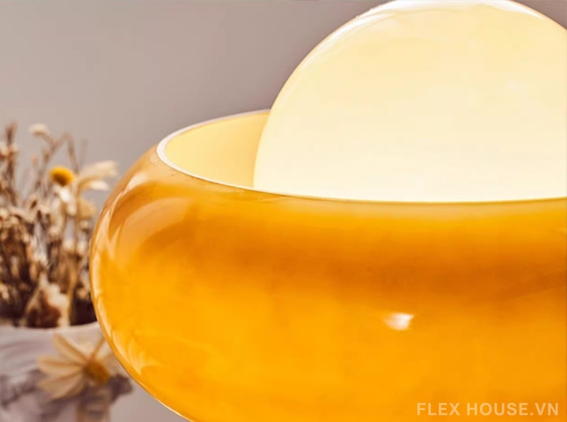 - Chất liệu chao đèn: Thủy tinh thủ công màu hổ phách chuyển màu