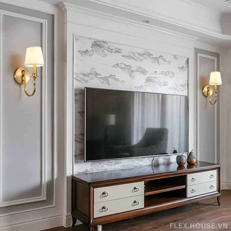 Không chỉ đóng vai trò chiếu sáng, chiếc đèn tường bằng đồng VDC03 còn là một chi tiết decor giúp không gian trở nên ấm áp, lịch lãm và giàu chiều sâu thẩm mỹ. Ánh sáng xuyên qua chao vải dịu nhẹ, lý tưởng cho phòng ngủ, hành lang, phòng khách, cầu thang hay các không gian khách sạn – boutique – resort theo phong cách tân cổ điển, luxury.