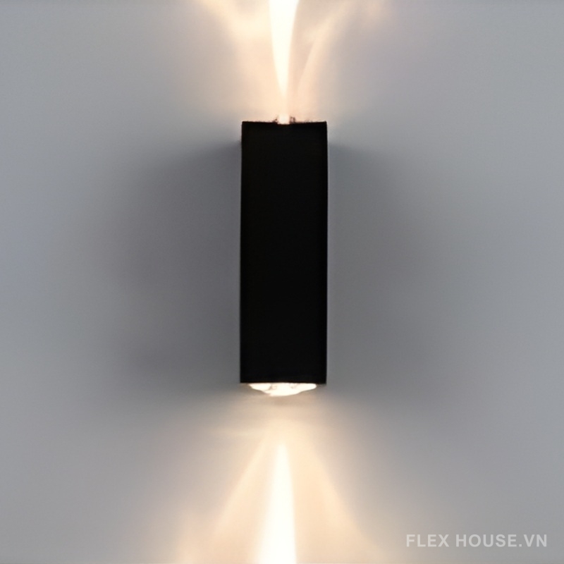 Điểm nổi bật của mẫu đèn tường này chính là hiệu ứng ánh sáng hai chiều, tạo mảng sáng đối xứng đẹp mắt, giúp tôn lên cấu trúc tường và tạo chiều sâu mỹ thuật cho không gian. Chất liệu sắt sơn tĩnh điện bền màu, chống oxy hoá, kết hợp chuẩn IP65 giúp đèn hoạt động tốt dưới nắng mưa.
