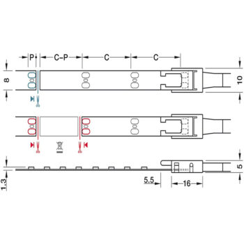 Đèn có chiều rộng 8mm, chiều cao 1.3mm, tuổi thọ chuẩn L80/B10 là hơn 50.000 giờ và tuổi thọ chuẩn L70/B50 là hơn 80.000 giờ. Ngoài ra, sản phẩm còn có cấp bảo vệ IP20 và được bán theo đơn vị tính là 1 cuộn dài 5m.