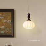 - Lụa thủ công cao cấp: Chụp đèn được bọc bằng chất liệu lụa mềm mại, nhẹ nhàng nhưng vô cùng bền bỉ, cho ánh sáng khuếch tán tự nhiên và sang trọng.