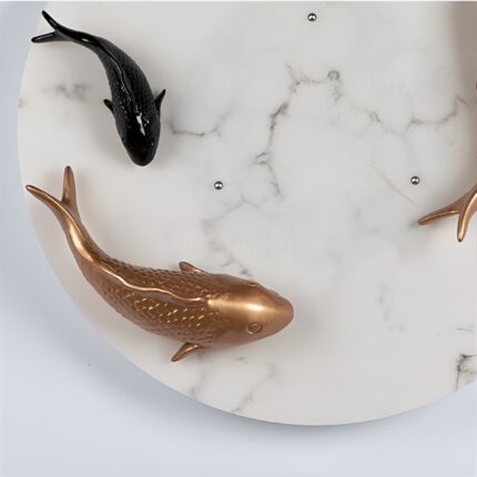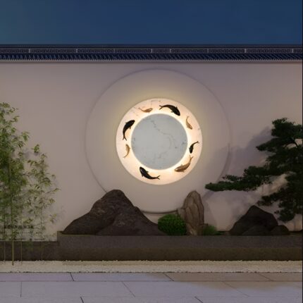 Đèn ốp tường ngoài trời đàn cá bơi lội B1179 là một tác phẩm nghệ thuật được tạo nên từ những thợ thủ công lành nghề. Sản phẩm được chế tác bằng nhựa giả đá đèn rất nhẹ dễ dàng lắp đặt và di chuyển mọi không gian. Ánh sáng ấm chiếu sáng tán rộng trong không gian làm nổi bật những chú cá như đang bơi lội giúp cho người sử dụng cảm giác thư giản hơn.