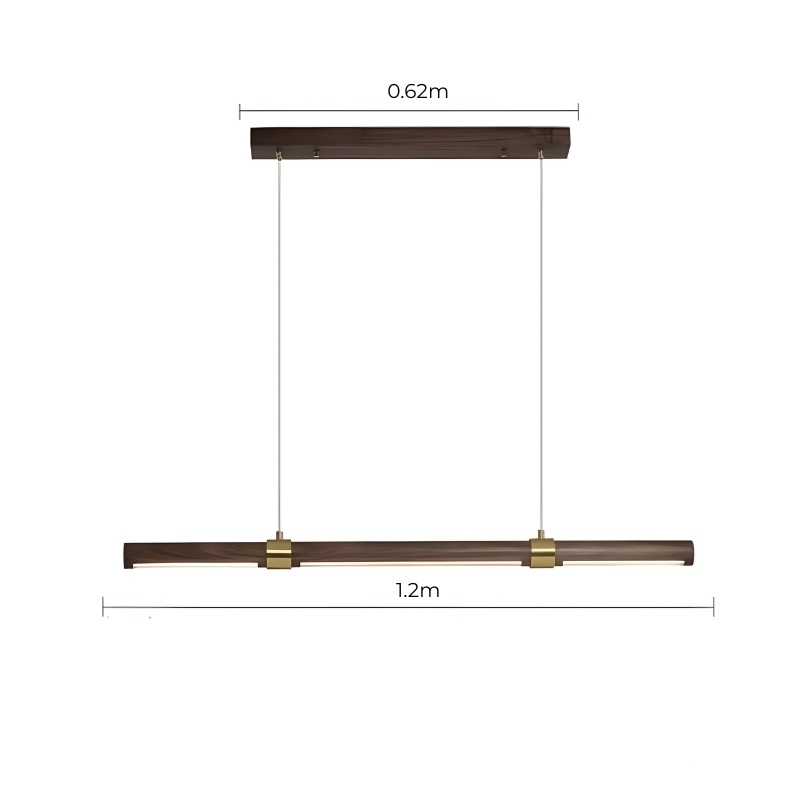 - Bộ đèn bao gồm đầy đủ: thân đèn gỗ óc chó, LED tích hợp, vòng treo đồng thau, dây treo chỉnh cao, hộp trần gỗ óc chó đồng bộ, giúp tổng thể hài hòa, lắp đặt nhanh, gọn, không phô dây điện.