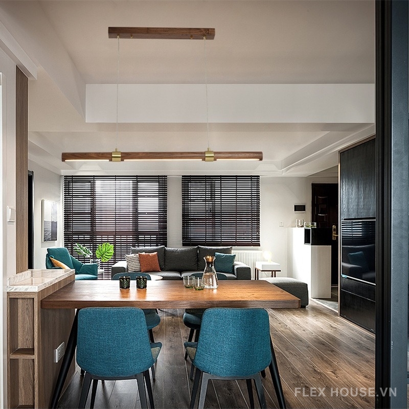 Thiết kế thanh gỗ dài kết hợp vòng treo bằng đồng thau và chụp đèn Acrylic, tạo nên tổng thể tinh tế – sang trọng – chuẩn thẩm mỹ hiện đại. Đèn thả trần DX7862 là lựa chọn lý tưởng cho bàn ăn, quầy bar, phòng khách, homestay, studio phong cách Bắc Âu hoặc các không gian yêu thích sự mộc mạc cao cấp.