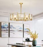 Đèn thả trần bằng đồng khung tranh khảm trai xếp vòng ZQ3857 là đèn trần kiểu hiện đại. Đèn làm hoàn toàn bằng đồng, nên sáng bóng và bề mặt nhẵn, được hoàn thiện nhờ công nghệ cao. Đèn lấy cảm hứng từ hình tranh thuỷ mặc được khảm trai cầu kì. Đèn có 2 kích thước, phù hợp với nhiều không gian nhà ở khác nhau. Chiều cao đèn có thể điều chỉnh.