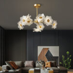 Đèn thả trần bằng đồng mai vàng sáng tạo HL8660 là đèn làm nổi bật giữa không gian với thiết kế độc đáo những bông hoa tự nhiên tỏa ánh sáng lung linh trong suốt với chao đèn acrylic chất lượng cao, trong suốt hoàn hảo, tán xạ làm cho ánh sáng rực rỡ hơn. Toàn bộ thân đèn hoàn toàn bằng đồng được rèn cẩn thận, chống ăn mòn và chống gỉ, bền bỉ.