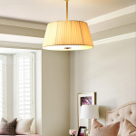 Đèn thả trần bằng đồng nhà hàng khách sạn MC375-3D là đèn thả trần được chế tác bằng vật liệu đồng và vải lanh cao cấp. Đèn được thiết kế theo phong cách cổ điển kiểu Mỹ với các đường nét chi tiết tinh tế, sang trọng. Chất liệu đồng được xử lý đảm bảo đèn sử dụng lâu dài mà không bị oxy hóa đồng, ăn mòn. Vải lanh dệt thủ công chất liệu dày, mềm và tán sáng khá tốt, ánh sáng dịu đều không gây cảm giác chói lòa