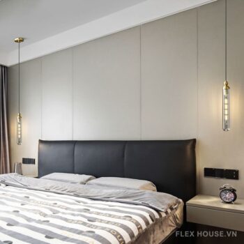 Việc sử dụng đèn thả giúp tiết kiệm không gian trên bàn đầu giường, cho phép bạn sử dụng mặt bàn cho các mục đích khác như đặt sách, điện thoại hay đồ trang trí. Ngoài ra, đèn cung cấp ánh sáng tập trung, lý tưởng cho các hoạt động như đọc sách, làm việc hay thư giãn trước khi đi ngủ. Ánh sáng mềm mại từ đèn thả giúp giảm mỏi mắt và tạo cảm giác thoải mái.