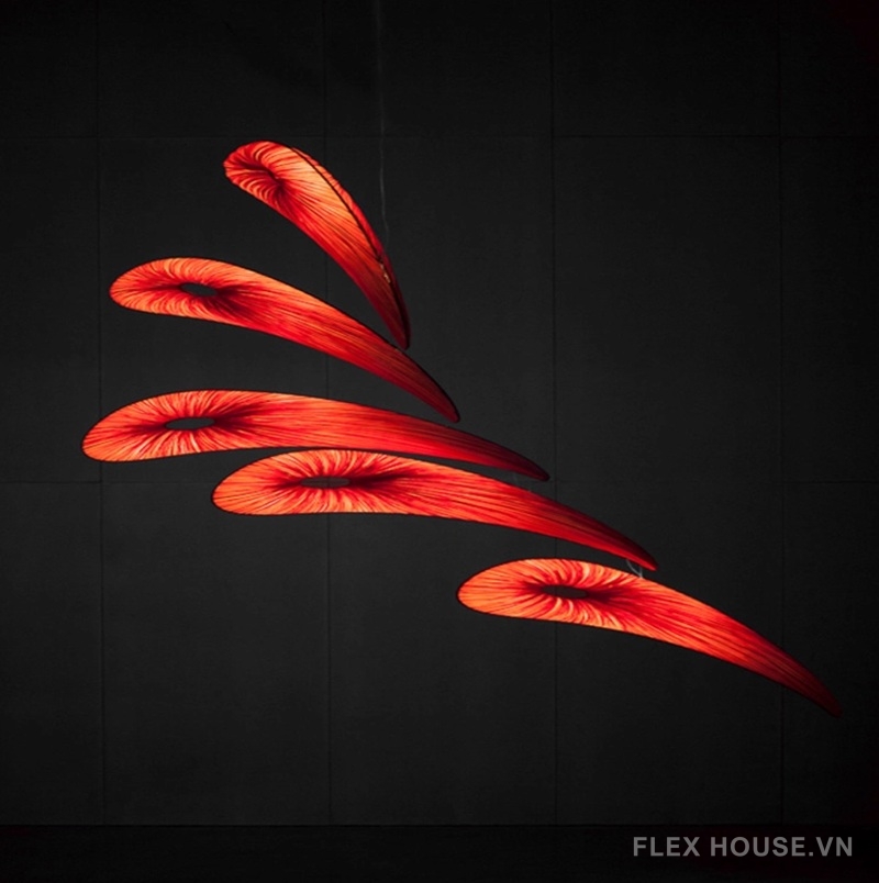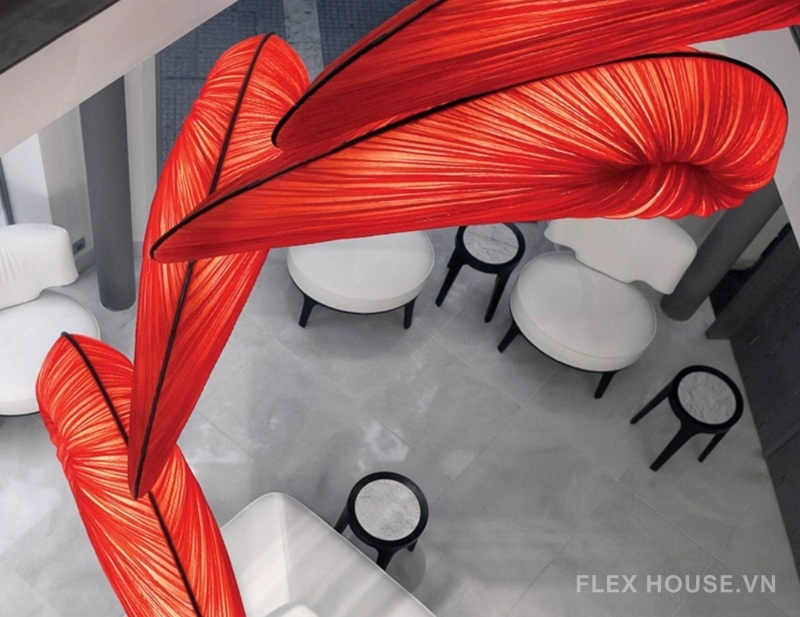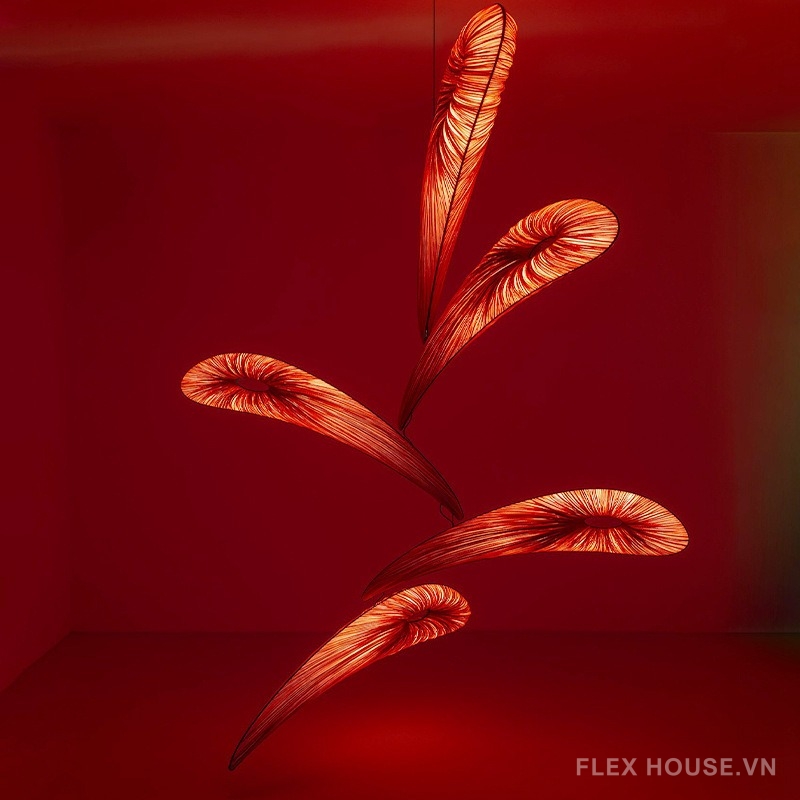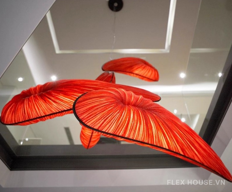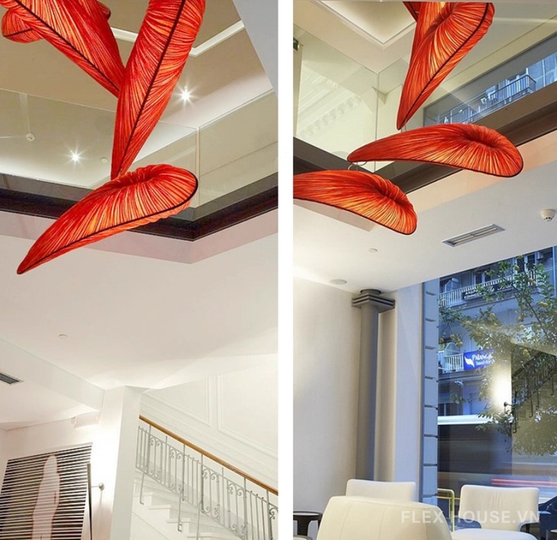 Đặt mua Đèn thả trần nghệ thuật lá lụa đỏ QM8254