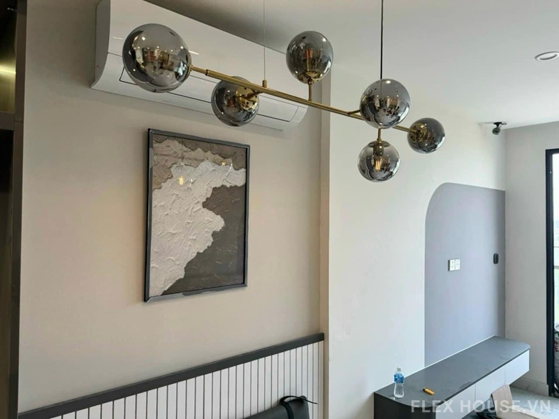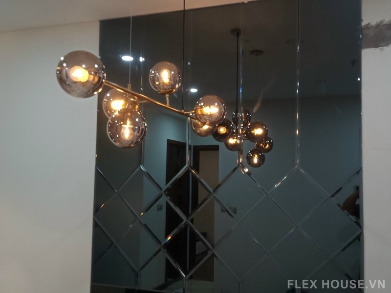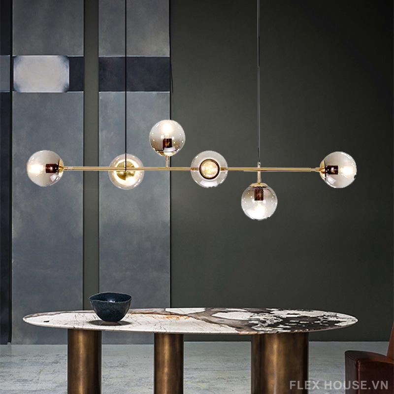 Lấy cảm hứng từ tinh thần disco nghệ thuật pha hậu hiện đại, đèn thả trần TTK107N6 gây ấn tượng mạnh với bố cục thanh ngang cân đối cùng các quả cầu thủy tinh ánh khói phản chiếu ánh sáng đầy chiều sâu. Khi bật đèn, bề mặt chao thủy tinh tạo hiệu ứng gương mờ tinh tế, mang lại cảm giác sang trọng, có chút huyền ảo như ánh sáng trong các không gian lounge, gallery hay căn hộ thiết kế cao cấp.