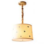 Đèn thả trần phòng trẻ em đồng kiểu Mỹ MC590 là đèn thả được thiết kế theo hình ngôi sao với chất liệu bằng đồng nguyên chất và vải chịu nhiệt chất lượng cao. Đồng được sản xuất theo nhiều công đoạn và được xử lý chống oxy hóa đồng, chống ăn mòn nên màu sắc của đèn luôn tươi mới, màu đồng brass. Vải chịu nhiệt được dệt cận cận có khả năng phân tán ánh sáng dịu và chiếu sáng ấm cho không gian