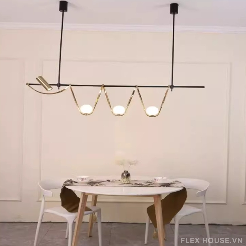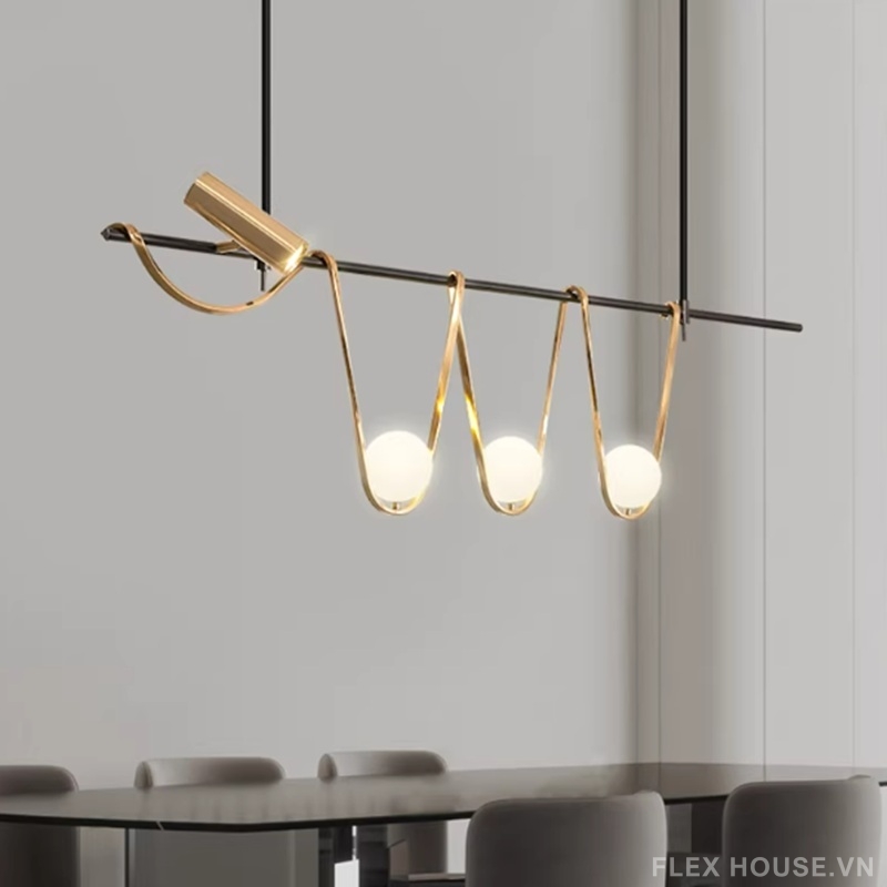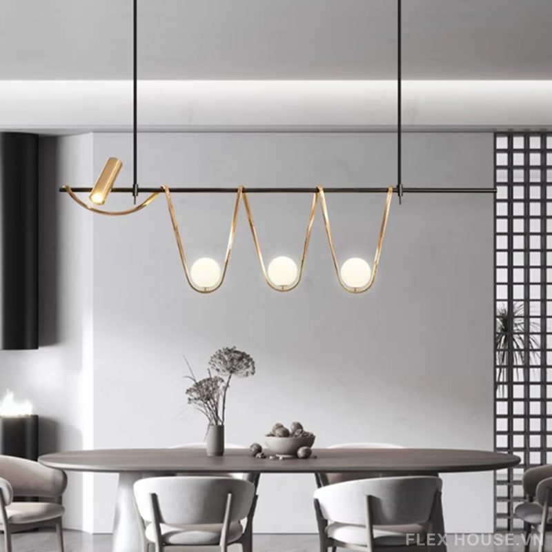 Lấy cảm hứng từ trường phái Postmodernism, đèn thả trần BA6583 phá vỡ những khuôn mẫu đối xứng quen thuộc, biến ánh sáng thành một ngôn ngữ nghệ thuật giàu cảm xúc. Thiết kế thanh ngang tối giản kết hợp các đường kim loại uốn lượn mềm mại ôm trọn những quả cầu thủy tinh phát sáng, tạo nên nhịp điệu thị giác vừa tự do, vừa tinh tế.