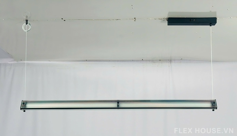- Kiểu dáng: Đèn thả dạng thanh dài, treo cáp mảnh, phong cách hiện đại