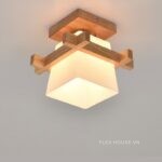 Đặt mua Đèn trần gỗ chao thủy tinh tứ giác độc đáo SBS9506
