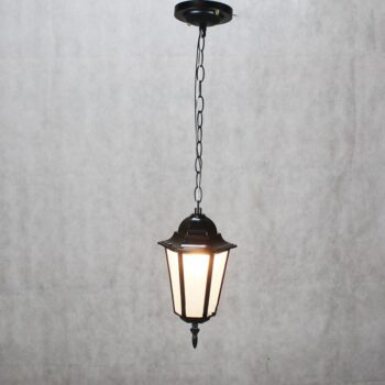 Đèn treo ngoài trời kiểu dáng retro chiếu sáng lối đi với mặt kính mờ thì đèn tạo ra ánh sáng êm dịu và tinh tế, kính trong suốt giúp truyền tải ánh sáng mạnh mẽ và tăng cường tính hiện đại của đèn, và mặt kính kim cương mang đến vẻ sang trọng và lấp lánh, tạo nên những đám sáng nhỏ như kim cương khi ánh sáng đi qua. Chiếc đèn độc đáo này không chỉ làm tăng thêm tính thẩm mỹ mà còn tạo điểm nhấn lôi cuốn trong không gian.