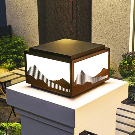 Đặt mua Đèn trụ cổng hình hộp decor núi non hùng vĩ ZT0020
