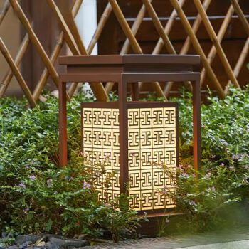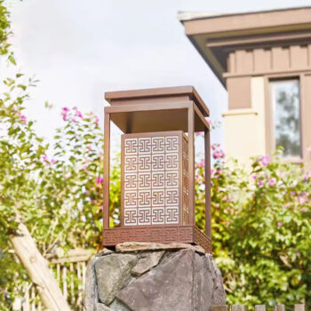 Đặt mua Đèn trụ sân vườn khối chữ nhật họa tiết Á Đông ACM401