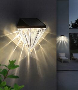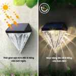 Đèn tường kim cương năng lượng mặt trời PD3407 được cấu tạo từ nhựa ABS cao cấp, thiết kế hiện đại và tính thẩm mỹ cao. Sử dụng cách hắt ánh sáng thông minh chiếu vào cạnh tường nên không gây chói mắt, hơn nữa còn góp phần làm khu vực ngoại thất trở nên lung linh và ấn tượng hơn. Được lựa chọn sử dụng trong nhiều kiểu nhà khác nhau như từ nhà mái thái cho đến biệt thự, Villa, khách sạn…