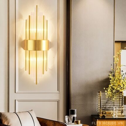 Phần thân kim loại mạ vàng champagne đóng vai trò như “khung tranh” hoàn hảo, ôm trọn khối pha lê tinh xảo, gợi nhớ đến phong cách Italian Art Deco – sang trọng, chuẩn mực và đầy tính nghệ thuật. Đèn tường VPL12 không phô trương, mà cuốn hút bằng vẻ đẹp tinh tế, rất phù hợp cho sảnh khách sạn, hành lang cao cấp, phòng khách hay phòng ngủ theo phong cách luxury – nơi ánh sáng không chỉ để chiếu sáng, mà còn để kể một câu chuyện thẩm mỹ.