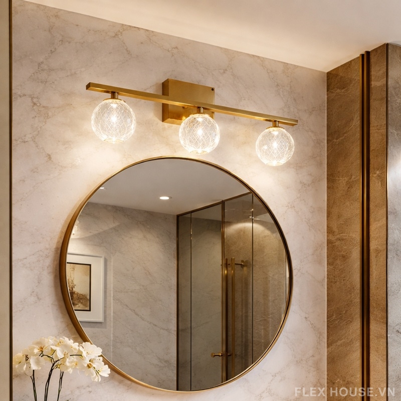 Đèn tường rọi gương khung mạ vàng chao thủy tinh RT5883 – Giải pháp ánh sáng rọi gương chuẩn khách sạn cao cấp