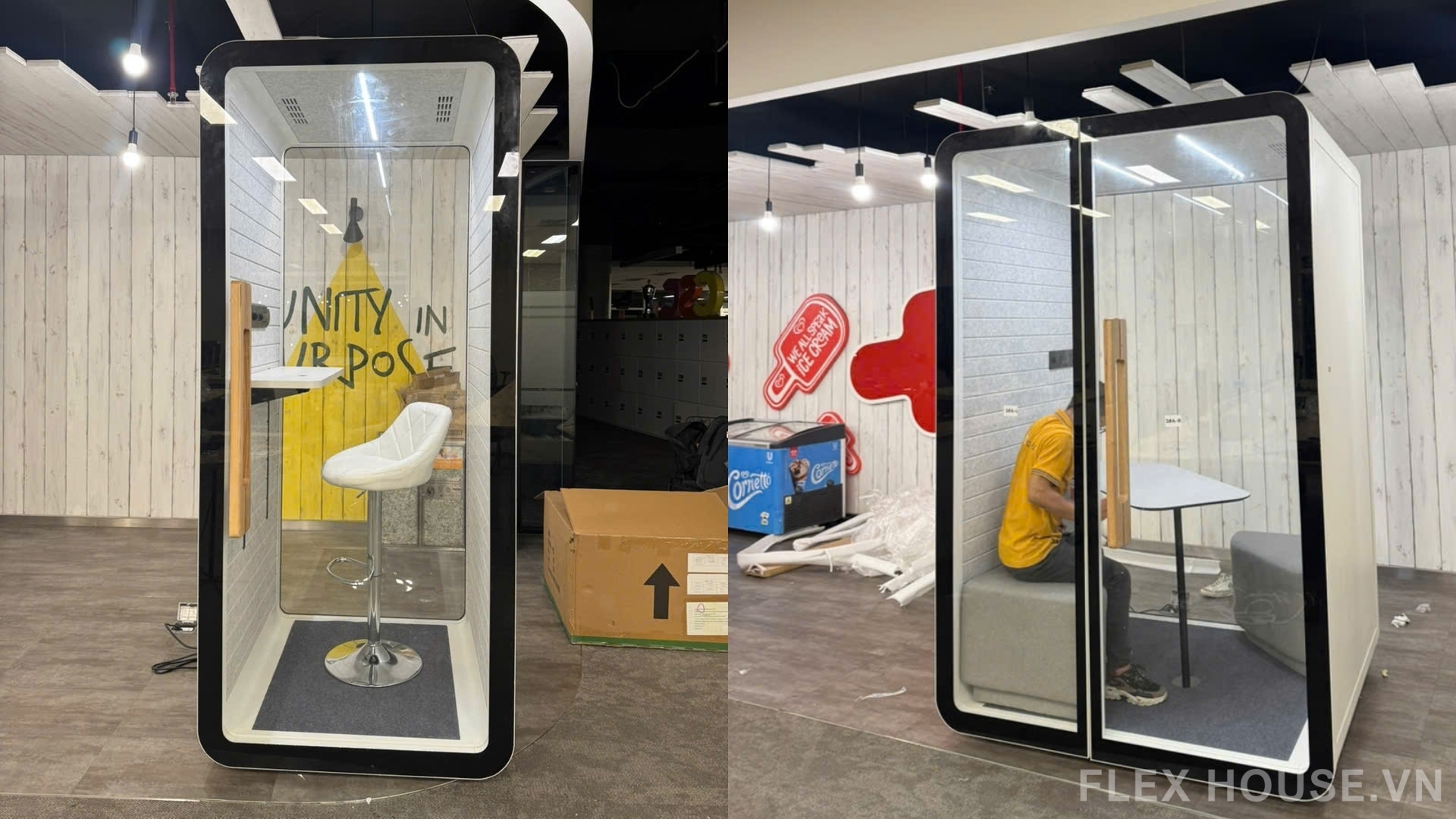 Với thiết kế tinh gọn, khả năng cách âm hiệu quả và tính ứng dụng cao, các booth cách âm của Flexhouse giúp doanh nghiệp tạo thêm không gian làm việc riêng tư ngay trong văn phòng mở, góp phần nâng cao hiệu suất làm việc và trải nghiệm nhân sự.