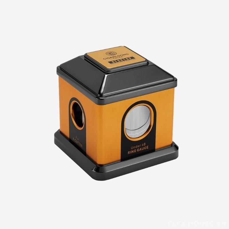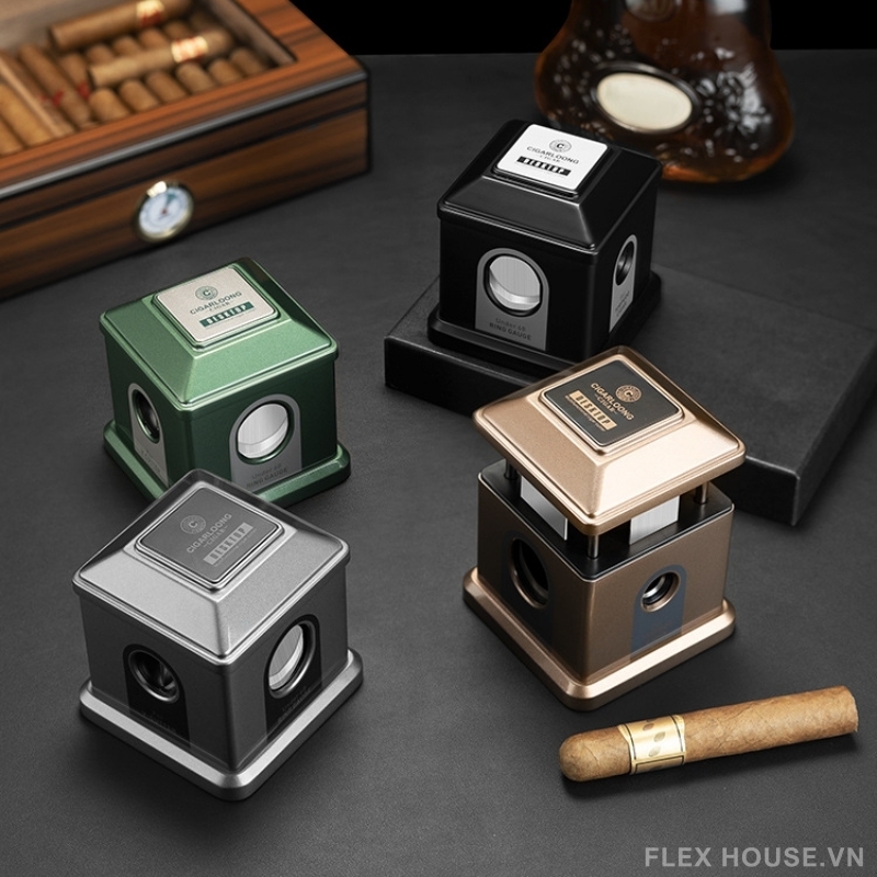 Dụng cụ cắt cigar để bàn 4 lưỡi đa màu CGL7751 là phiên bản cutter để bàn cao cấp tích hợp 4 kiểu cắt trong cùng một thiết bị, mang đến trải nghiệm linh hoạt và chuyên nghiệp cho người chơi cigar. Thiết kế dạng khối vuông nhỏ gọn nhưng chắc chắn, thao tác nhấn mở tiện lợi, phù hợp đặt tại bàn làm việc, phòng khách hoặc cigar lounge.