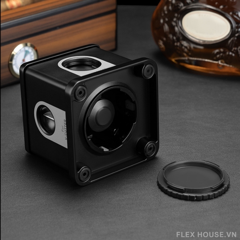 - Tích hợp 4 kiểu cắt trong 1: Cắt chữ V (≤ 22mm), Cắt tròn 23mm, 27mm, 13mm; đáp ứng đa dạng kích thước cigar và gu thưởng thức khác nhau