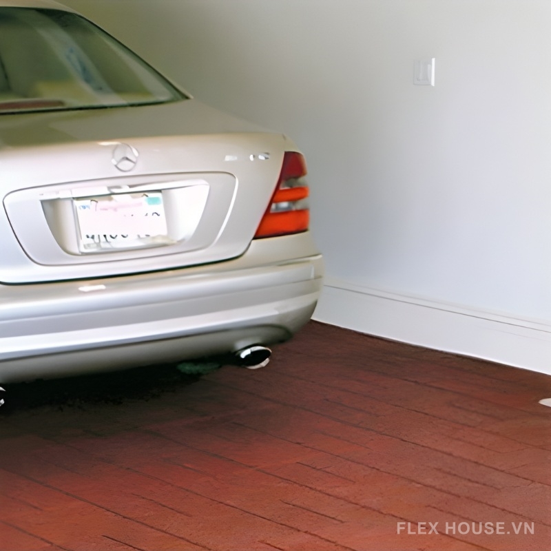 Ngoài gara ô tô, mẫu cao su lót sàn này còn phù hợp cho lối đi sân vườn, đường dạo bộ, hồ bơi, khu tập thể dục ngoài trời… nhờ ưu điểm không đọng nước, chống trượt, không bị nứt vỡ như gạch truyền thống. Kiểu vân gạch mô phỏng họa tiết lát gạch cổ điển giúp không gian vừa sạch sẽ, vừa thẩm mỹ và sang trọng.