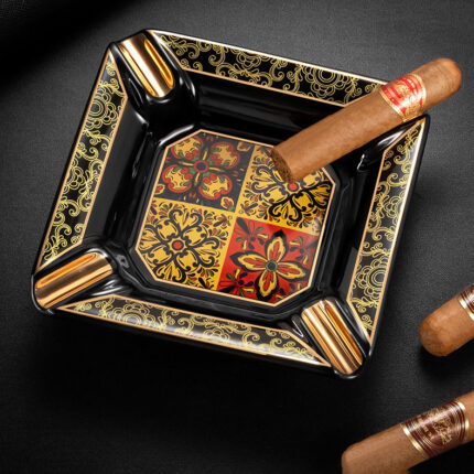 Gạt tàn cigar 4 điếu gốm sứ hoa văn đối xứng CLG7550 làm bằng gốm sứ chất lượng cao với dáng khay vuông có 4 rãnh đặt cigar ở các góc khay rộng 36mm tiện lợi, thoải mái gác theo ý thích. Bề mặt thiết kế tinh xảo, hoa văn đối xứng đầy sự sang trọng với sự kết hợp của đa dạng họa tiết và màu sắc một cách tinh tế, tạo điểm nhấn ấn tượng giúp mang đến vẻ đẹp đẳng cấp, quyền lực và cũng có thể làm vật trang trí thêm tăng vẻ đẹp thẩm mỹ cho không gian của bạn.