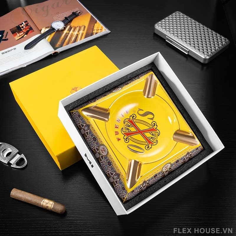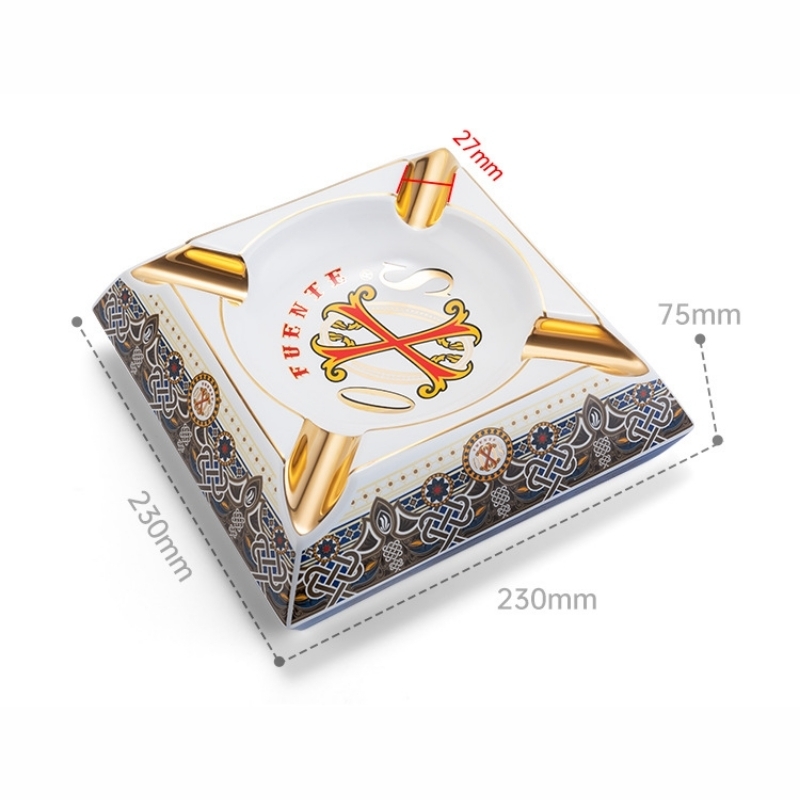 Gạt tàn cigar sứ cao cấp phong cách hoàng gia CGL5087 là phụ kiện cigar sang trọng được thiết kế dành riêng cho những người yêu thích phong cách thưởng thức xì gà đẳng cấp. Với kiểu dáng vuông mạnh mẽ kết hợp họa tiết trang trí tinh xảo, sản phẩm mang đến vẻ đẹp cổ điển, sang trọng, phù hợp với không gian phòng khách, phòng làm việc hoặc phòng cigar lounge.