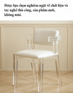 Ghế Acrylic trong suốt dành cho bàn ăn bàn cafe C021 sở hữu thiết kế độc đáo, gây ấn tượng với khung ghế được làm bằng nhựa Arcylic trong suốt như pha lê cùng miếng đệm bọt biển xốp được phủ một lớp da mịn cao cấp. Tuy thiết kế nhỏ nhắn đơn giản nhưng khả năng chịu lực cao, bọt biển đàn hồi cao áp suất không đổi, chắc chắn, cảm giác ngồi mềm mại nhưng không bị xẹp xuống, có thể phân bổ nhanh chóng và đồng đều áp lực ngồi và giảm sâu áp lực lên thắt lưng, lưng, hông và chân.