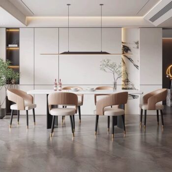 Ghế ăn bọc da lưng vòng hiện đại AI7148 là dòng ghế ăn có thiết kế sang trọng và tinh tế, ghế có phần khung được làm từ thép carbon với bề mặt được gia công và xử lý bền bỉ, chống gỉ và chống ăn mòn hiệu quả. Ghế có đệm ngồi bọt biển với độ đàn hồi cao vô cùng đầy đặn, được bọc da cao cấp với khả năng chống bám bẩn và chống thấm, giúp bạn dễ dàng vệ sinh và lau chùi khi cần. Thiết kế lưng vòng với các vân dọc tối giản nhưng vô cùng tinh tế, đồng thời tạo thành điểm tựa phù hợp với cơ thể, mang đến trải nghiệm thư giãn tuyệt vời. Chân ghế sơn mạ đồng nổi bật, tích hợp nút cao su chống trượt an toàn, hạn chế tiếng ồn và bảo vệ sàn nhà của bạn.